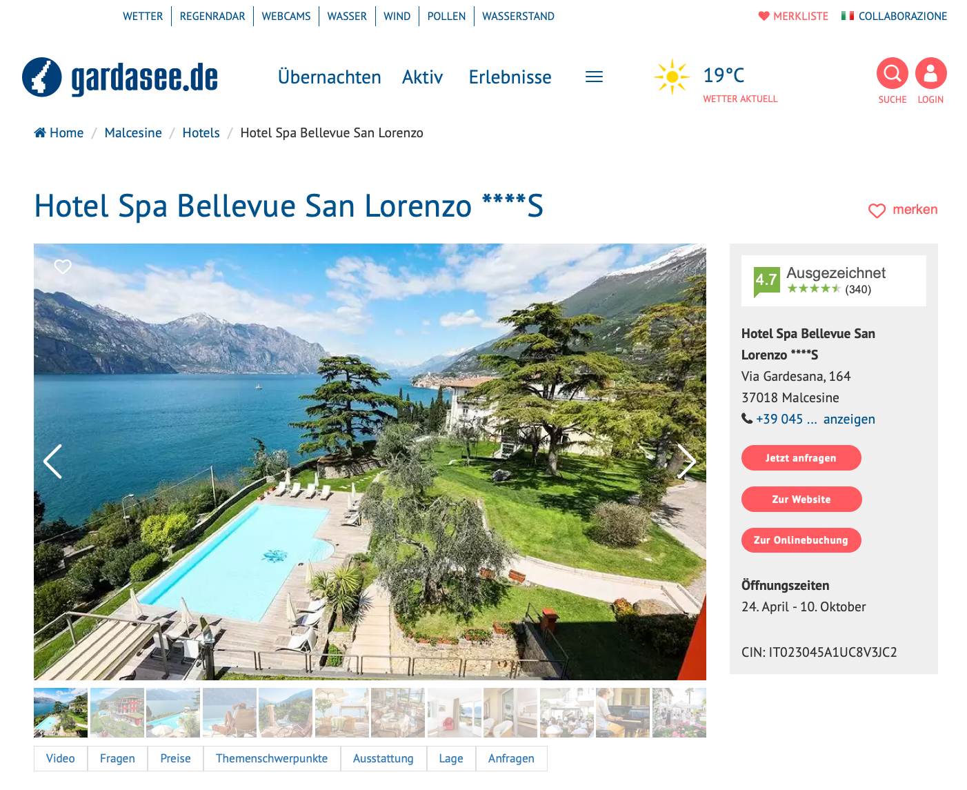 gardasee.de ist das führende deutschsprachige Informationsportal für die Gardasee-Region. Das in München ansässige Unternehmen bietet umfassende redaktionelle Inhalte, präsentiert Unterkünfte und touristische Anbieter und ist seit vielen Jahren die etablierte Anlaufstelle für deutschsprachige Gardasee-Urlauber.